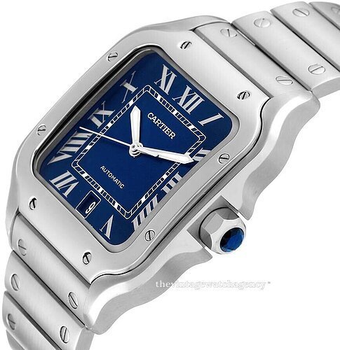 Featuring a sleek silver case paired with a captivating blue dial, this timepiece combines elegance with functionality. The square shape, iconic of the Santos line, is a timeless design that speaks to both tradition and modernity. With its automatic movement, the watch guarantees precision and reliability.