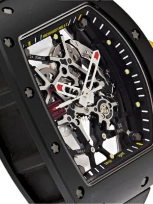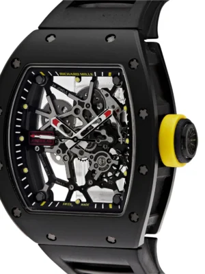 Engineered with a high-performance mechanical movement, the RM 035 delivers precision with every tick. Featuring Rafael Nadal’s signature design elements, its aesthetics capture the spirit of vitality and determination. The skeletonized dial showcases its intricate mechanisms, allowing wearers to appreciate the complexity of this timepiece. Swiss engineering ensures flawless accuracy, while the unique color palette adds sophistication that complements any ensemble.